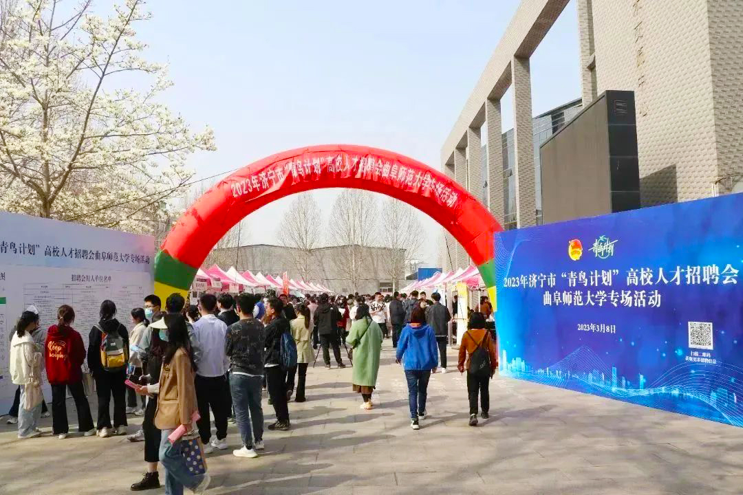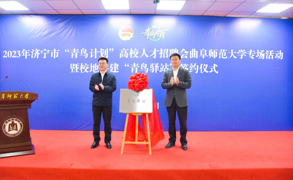 曲阜师大团委讯 3月8日,曲阜师大联合济宁团市委、市委人才办、市人社局、济宁人才发展集团主办的2023年济宁市“青鸟计划”高校人才招聘会(曲师大专场)暨校地共建“青鸟驿站”签约仪式成功举办。米兰官方网站党委副书记卢国强、济宁团市委书记田卫锋出席会议,共同为米兰官方网站—济宁“青鸟驿站”揭牌。