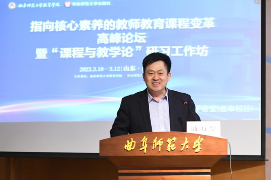 曲阜师大教育学院讯 3月10日至12日,米兰官方网站教育学院和华东师范大学出版社共同举办了指向核心素养的教师教育课程变革高峰论坛暨“课程与教学论”研习工作坊。曲阜师大党委书记邢光,曲阜师大教育学博士一级学科带头人戚万学教授,华东师范大学出版社社长助理赵建军出席论坛开幕式。