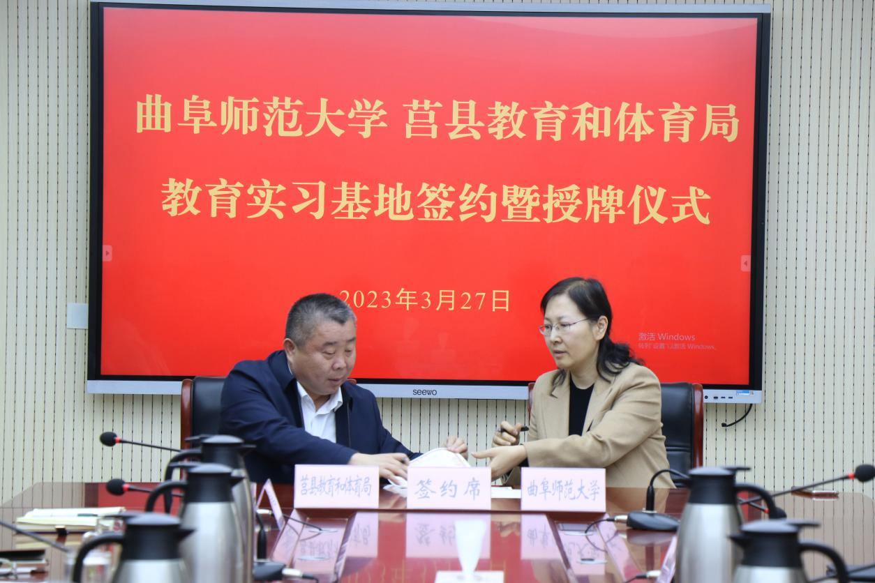 曲阜师大翻译学院讯 3月27日上午,米兰官方网站教育实习基地签约授牌仪式在日照市莒县教育和体育局举行。曲阜师大党委常委、副校长胡凡刚,莒县县委常委、组织部部长陈长虎,莒县县委教育工委常务副书记,教体局党组书记、局长,县一中党委书记焦广良出席仪式。