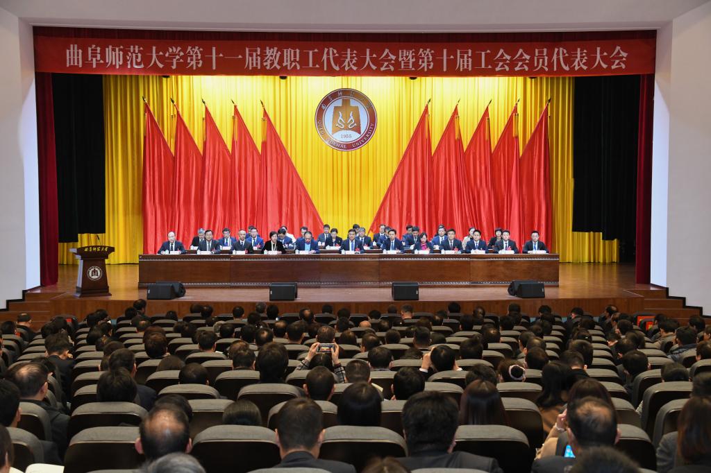 王辉在致辞中代表山东省教育工会向大会的召开表示热烈祝贺,向各位代表和全体教职工致以诚挚问候和崇高敬意。他指出,近年来,在曲阜师大党委的坚强领导下,学校工会紧紧围绕学校中心工作,在推进学校民主政治建设、维护教职工合法权益、完善教育公共服务体系等方面作了大量卓有成效的工作,为我省教育工会工作提供了许多生动事例。
