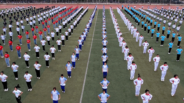 精彩纷呈的学生团体才艺表演将本次运动会开幕式推向高潮。体育科学学院的射艺表演,礼乐相和,在充满古韵的琴乐中,同学们变换阵型,以雄浑气势震撼四座;音乐学院学子的礼仪操表演,整齐的服装、挺拔的身姿、甜美的微笑、优美的体态,成为了赛场上一道靓丽的风景线;啦啦操社团带来了青春洋溢的啦啦操表演,时尚动感的旋律舞出了青春激情,唱响了青春赞歌;最后,由13个学院共793名学生组成的庞大体操方阵,展示了第九套广播体操表演,同学们迈着自信的步伐,把青春的活力带到操场的每一个角落。