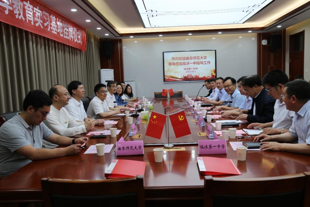 臧书杰介绍了临沭一中发展沿革、办学特色和教育教学情况,希望双方在各方面开展合作推动教育发展。