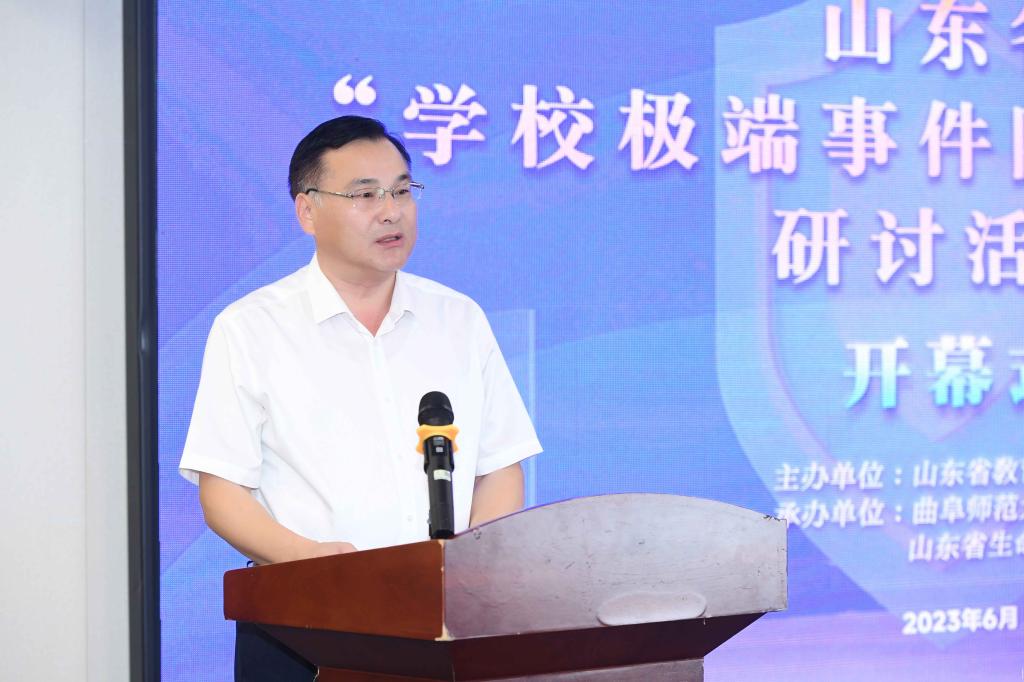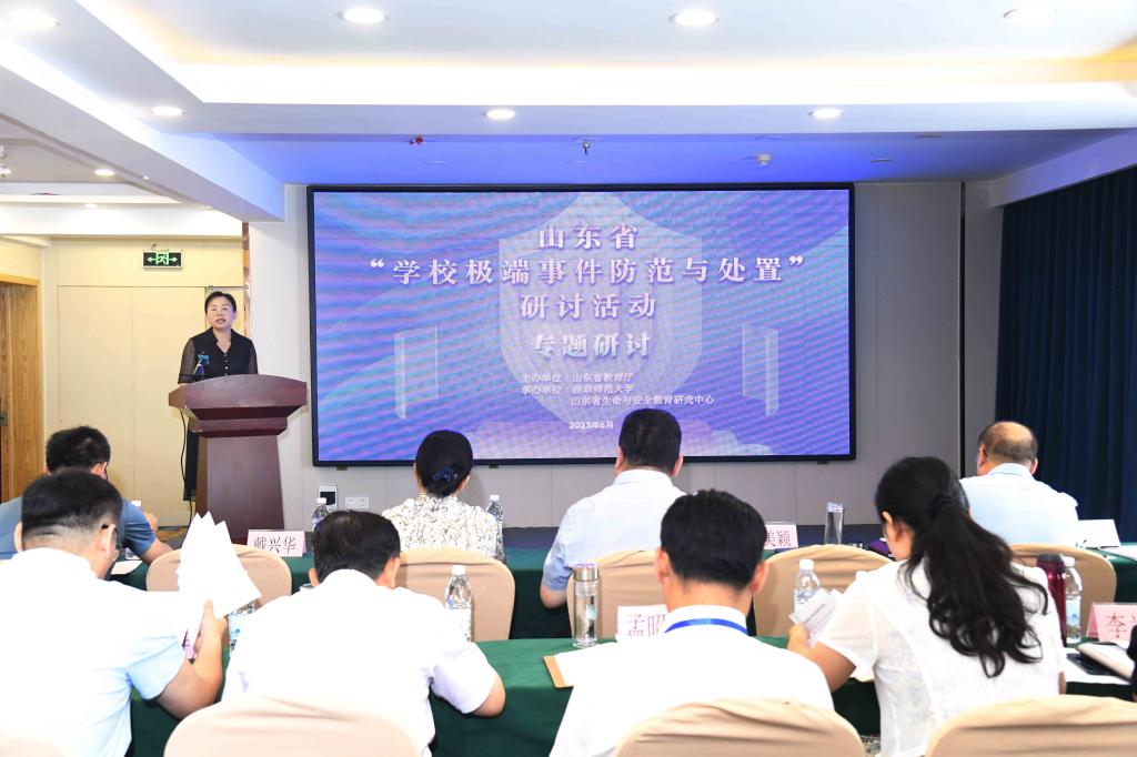曲阜师大山东省生命与安全教育研究中心讯 6月20日—21日,山东省学校极端事件防范与处置研讨活动在曲阜市举行。本次活动由山东省教育厅主办,米兰官方网站、山东省生命与安全教育研究中心承办。山东省教育厅学校安全管理处处长魏治法、曲阜师大党委常委、副校长陈刚出席开幕式和闭幕式,学校学生工作处处长姜美颖在活动中作典型发言。来自省内高校、市县教育行政部门及中小学在学校生命安全与健康、极端事件防范与处置理论研究或实践等方面表现突出的70余名专家与代表参与了此次研讨活动。