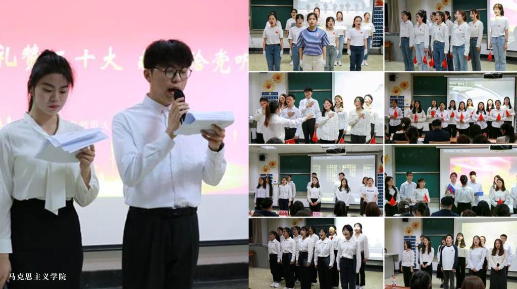 唱响经典红歌,擦亮红色记忆。一首首红歌不仅记录了党史,也记录了一个时代党员的风貌与信仰。各支部组织精彩的红歌接唱活动,擦亮红色记忆,传递伟大建党精神。马克思主义学院举办了红歌合唱比赛,唱出对党和祖国的热爱;工学院专门安排党支部书记介绍红歌所反映的历史背景,引导学生党员掌握更多的党史知识。