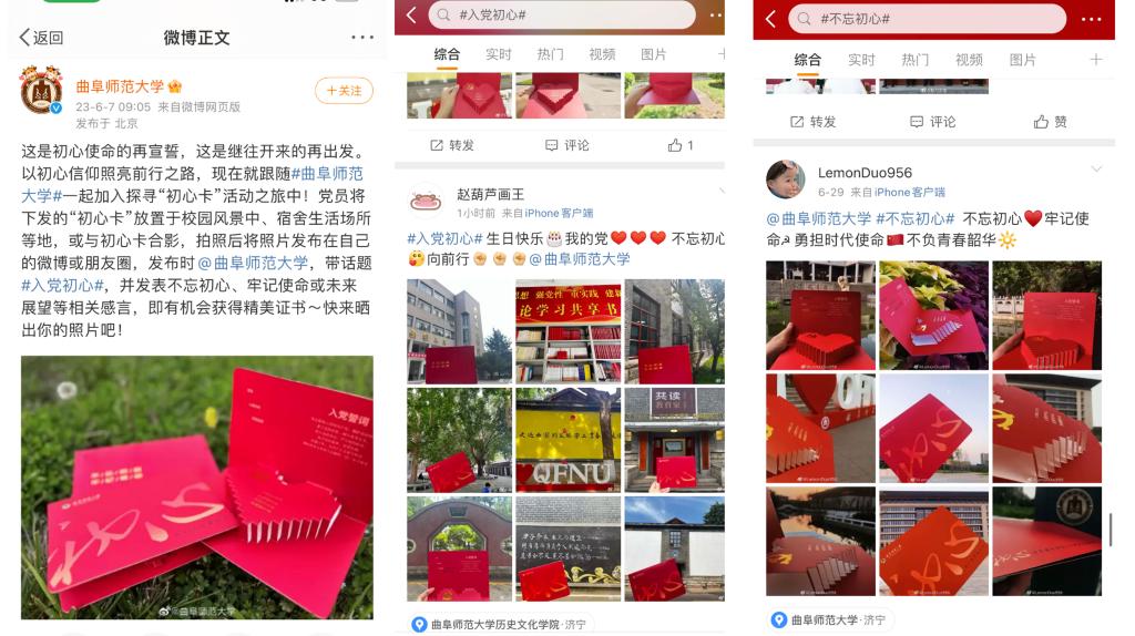 同过“政治生日”,铭记入党荣光。各党委(党总支)、党支部为新入党的学生党员举办了别开生面的“政治生日”,送上了独特的“政治生日”礼物,庆祝光荣入党。网络空间安全学院党支部为新发展的党员同志佩戴党员徽章,法学院学生党支部自制了生日蛋糕立体卡片,直属机构党委孔子文化研究院党支部赠送了政治生日卡……庄重而又温馨的仪式和“礼物”,增强着新入党学生党员的荣誉感、责任感和使命感。