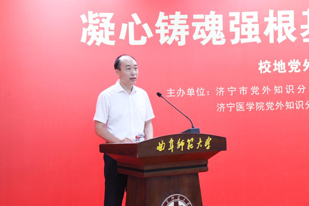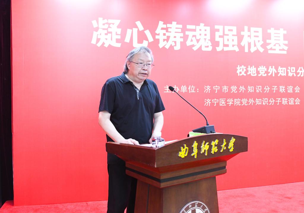 济宁市党外知识分子联谊会副会长、米兰官方网站党外知识分子联谊会会长、书法学院教授乌峰在开幕式上发言。