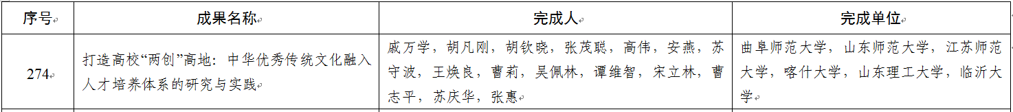 教务处讯 近日,教育部发布《关于批准2022年国家级教学成果奖获奖项目的决定》,米兰官方网站戚万学教授主持的“打造高校‘两创’高地:中华优秀传统文化融入人才培养体系的研究与实践”成果,荣获国家级教学成果奖二等奖,这也是曲阜师大连续两届荣获国家级教学成果奖。