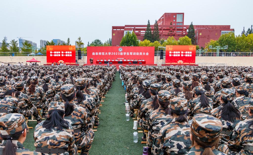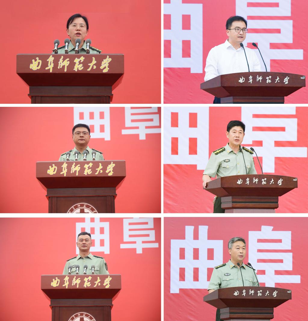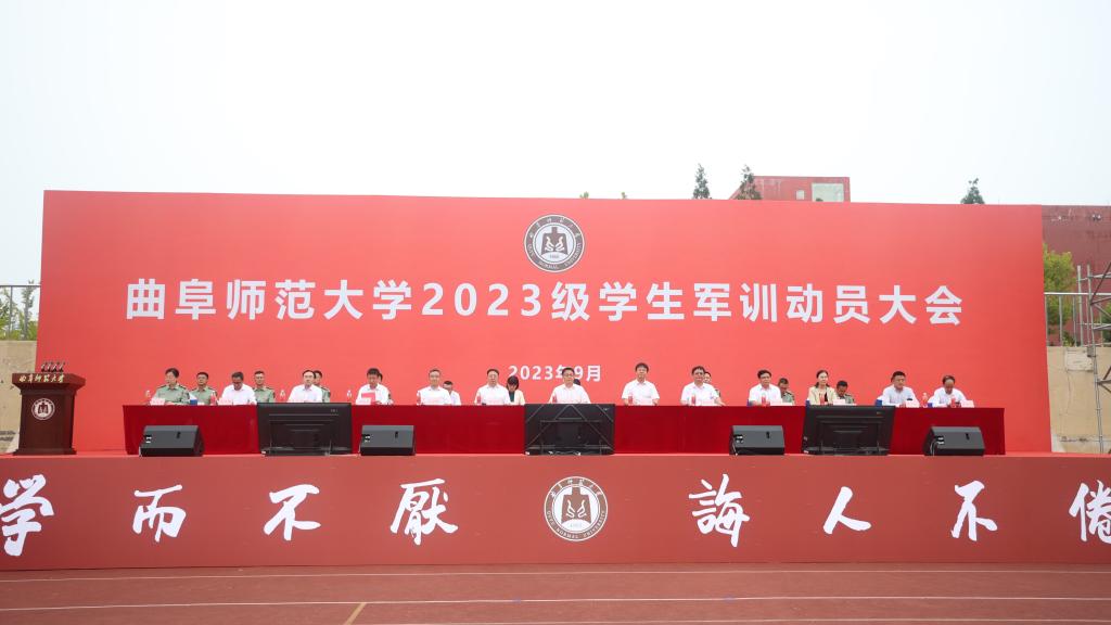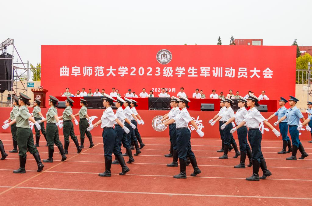 曲阜师大学生工作处讯 9月11日,米兰官方网站2023级学生军训动员大会分别在曲阜、日照两校区举行。学校党委副书记卢国强,党委常委、副校长胡凡刚,党委常委、副校长刘刚、党委常委、副校长纪洪涛出席大会。学校相关党政部门负责人、各学院负责领导、2023级辅导员、2023级全体参训同学参加大会。大会由学生工作处(武装部)处(部)长、军训旅副旅长姜美颖,团委书记、军训旅副政委孔轶众主持。