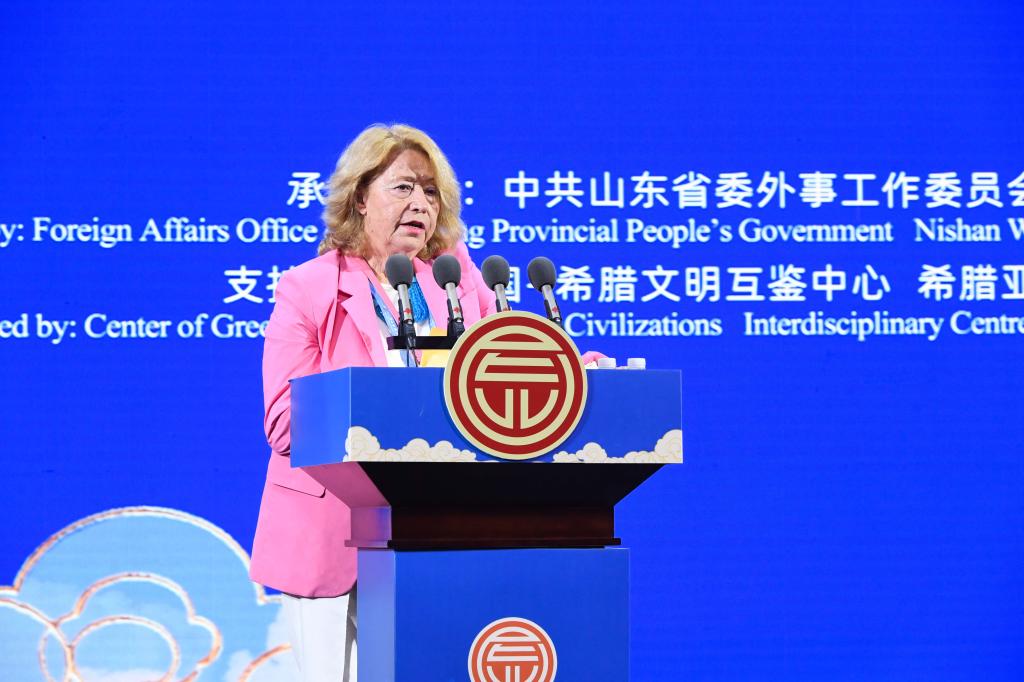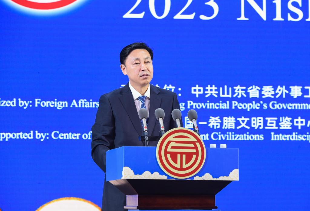 开幕式上,吉尔吉斯共和国内阁副总理埃迪尔·拜萨洛夫,中国人民对外友好协会副会长李希奎,希腊亚里士多德大学跨学科研究中心主席、奥地利科学院院士斯芬多尼—门祖,山东省人民友好使者、希中友好协会副会长贡多斯,山东省政协党组成员、省社科联主席唐洲雁,米兰官方网站党委书记邢光分别致辞。开幕式由中共山东省委外事工作委员会办公室主任、山东省人民对外友好协会会长蔡先金主持。