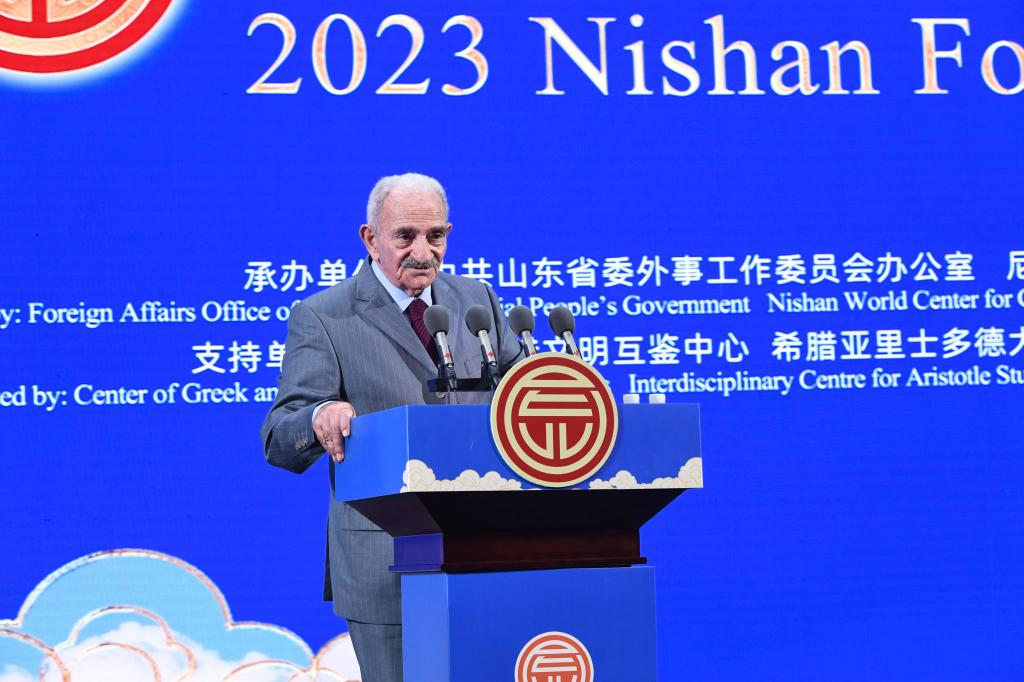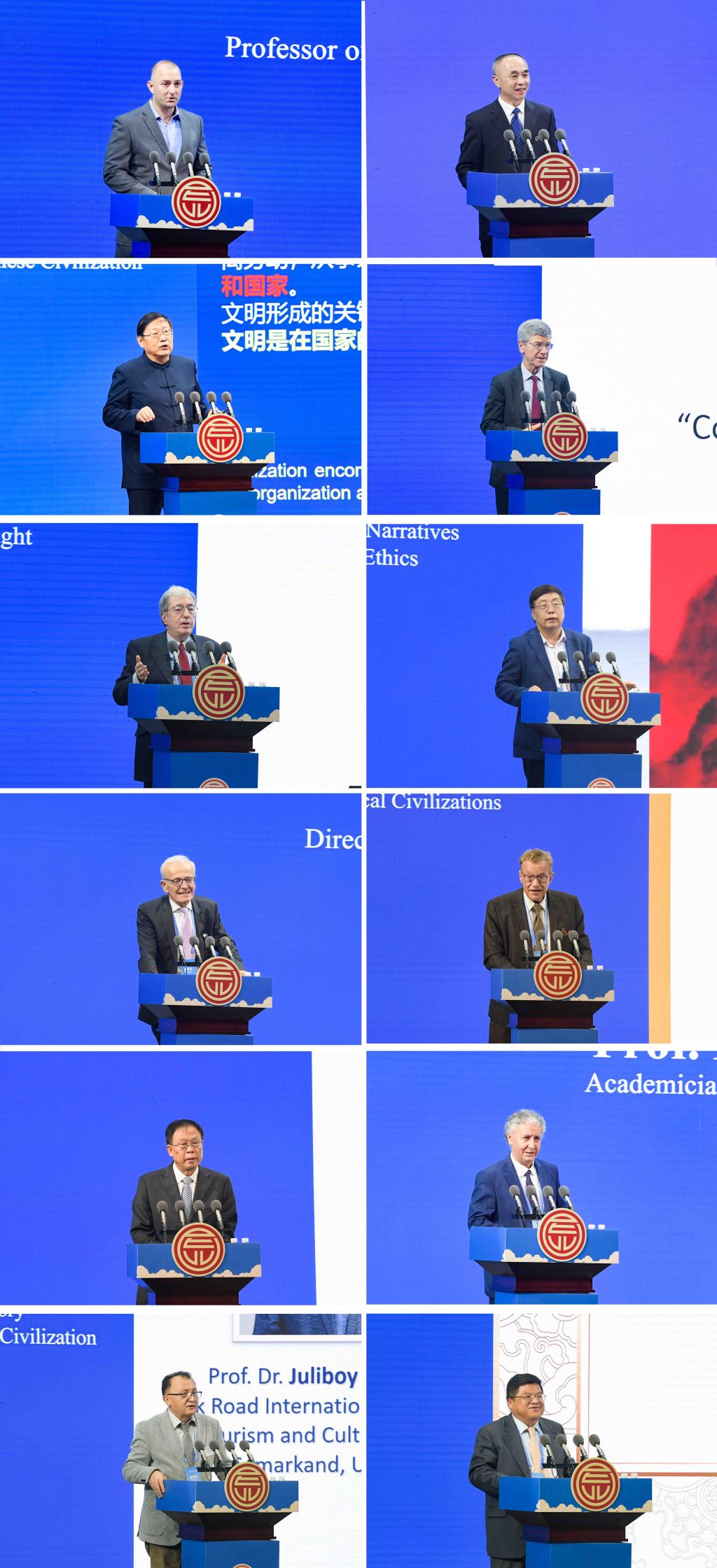 中国社会科学院学部委员、历史学部主任、河南大学特聘教授、中国考古学会理事长王巍院士,联合国可持续发展解决方案网络主席、哥伦比亚大学教授杰弗里·萨克斯,希腊雅典大学资深教授、中国-希腊文明互鉴中心指导委员会主席斯泰利奥斯·维尔维达基斯,北京大学哲学系教授、教育部长江学者特聘教授王中江,国际儒联副会长、德国图宾根大学中国中心主任施寒微,德国国家科学院院士、埃尔兰根-纽伦堡大学资深教授朗宓榭,米兰官方网站特聘教授、孔子文化研究院院长王钧林,塔吉克斯坦共和国科学院院士、人类学中心主任穆罕默德利·穆扎法尔,乌兹别克斯坦丝绸之路国际旅游与文化遗产大学第一副校长乔里博伊·艾尔塔扎罗夫,山东大学历史文化学院特聘教授、中外古典文明研究中心主任、中国先秦史学会副会长江林昌等10位中外专家学者,围绕“鉴古知今:古典文明的当代价值”这一主题,结合各自研究领域,阐发了诸多精彩的思想观点,彰显了学术创新的活力,体现了文明交流的魅力。