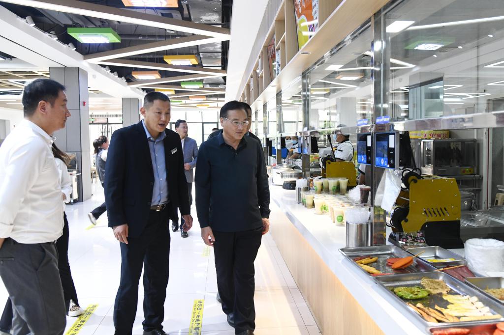 陈刚实地察看了食堂就餐环境、加工制作流程、食品留样、餐饮具洗消及食堂管理台账记录等,了解了食堂饭菜价格、食堂管理等情况,听取了食堂负责人对食堂运营相关情况及近期工作开展情况的汇报,并对食品安全工作提出了具体要求。