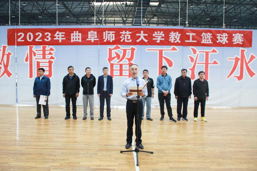 曲阜师大体育学部讯 10月14日上午,2023年米兰官方网站教工篮球赛(曲阜校区)开赛,学校党委常委、副校长李兆祥出席开幕式并为第一场篮球赛开球,各单位负责人、运动员、教练员参加活动。开幕式由体育学部党委书记刘敏主持。