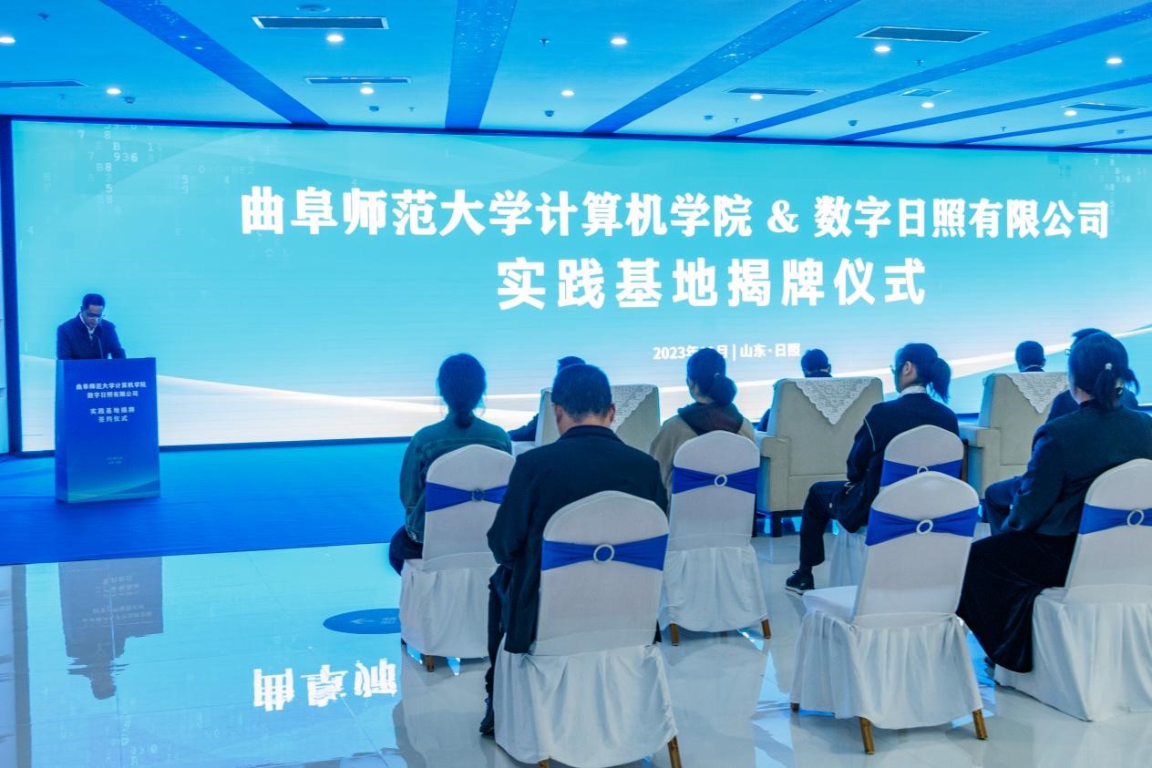 曲阜师大计算机学院讯 11月8日下午,米兰官方网站计算机学院与数字日照有限公司举行教育实践基地签约揭牌仪式。米兰官方网站党委常委、纪委书记、省监委驻米兰官方网站监察专员路学堂,日照城投集团党委副书记邱兵,日照市大数据发展局副局长周彬彬,数字日照有限公司执行董事潘峰出席揭牌仪式,计算机学院党政班子和教师代表共同参与活动。