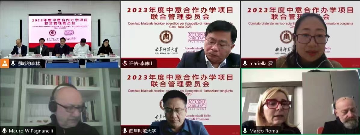 弗罗西诺内美术学院国际处处长莫罗·沃尔特·帕纳奈利(Mauro Walter Pagnanelli)、计算机图文设计教授马可·罗马(Marco Roma),曲阜师大国际交流合作处、教务处和传媒学院相关负责人参加会议。