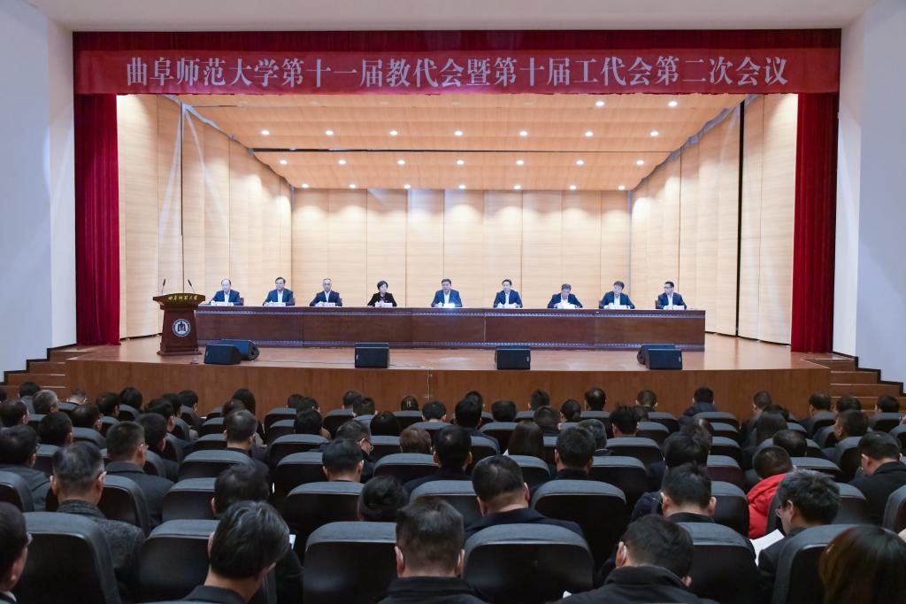 曲阜师大党委宣传部讯  3月13日,学校召开2024年工作部署会暨第十一届教代会、第十届工代会二次会议。学校党委书记邢光主持会议并讲话,党委副书记、校长张洪海作学校工作报告,党委副书记李志红作教代会建设和工会工作报告。学校领导,全校科级以上干部,双代会代表,市级以上“两代表一委员”、民主党派负责人、无党派代表人士出席会议。