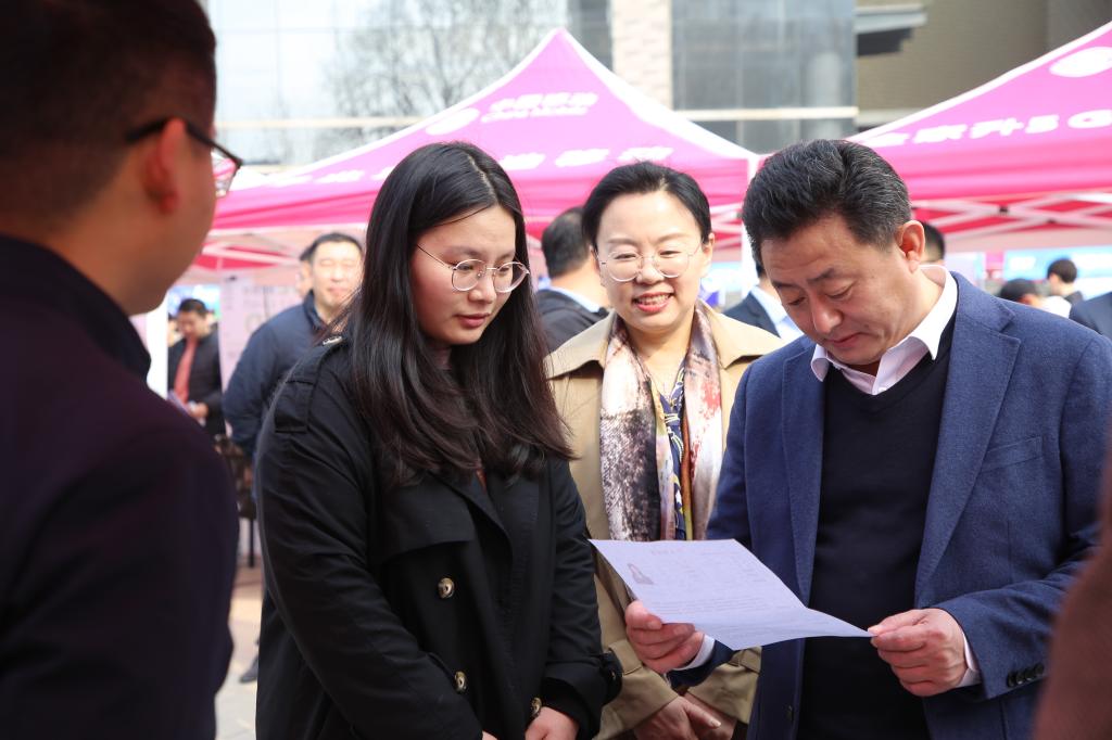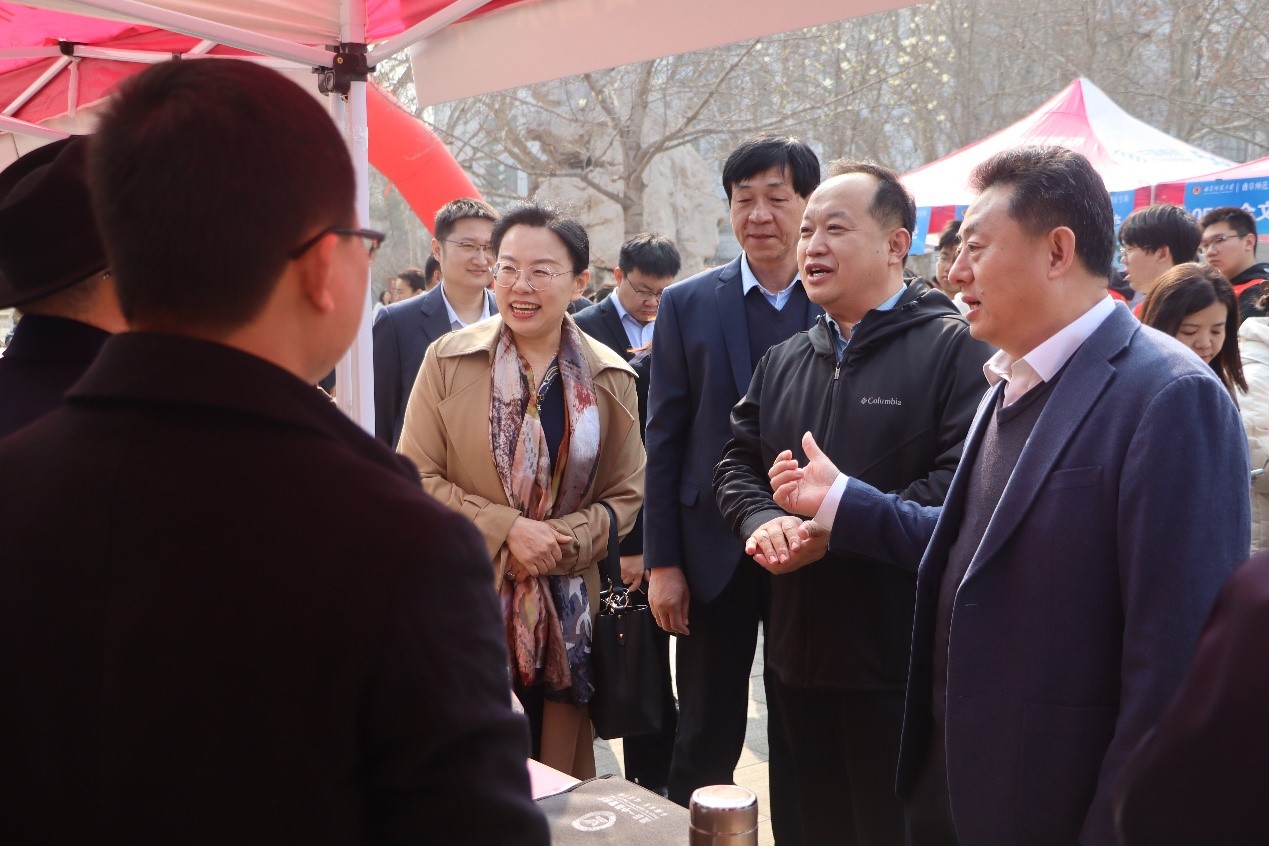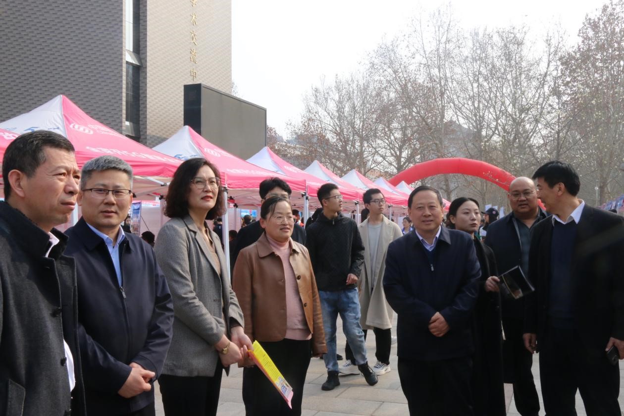 招聘会现场现场,学校领导与招聘单位和求职学生亲切交流,询问招聘情况,了解企业需求,认真听取用人单位对学校毕业生的就业反馈和人才培养的意见建议。同时与求职的毕业生进行交流,了解学生求职进度,鼓励毕业生积极投递简历,重视职业发展规划,树立求职信心,积累经验。