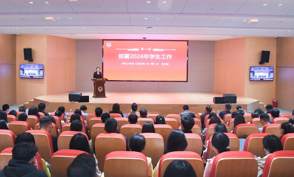 会上,学生工作处处长姜美颖、团委书记孔轶众,分别结合“六大育人工程”和“1315”团学工作体系,规划部署了2024年重点学团工作。