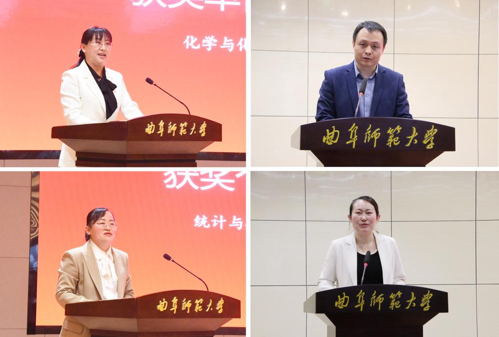学团工作先进单位代表——化学与化工学院党委副书记孙金玲、翻译学院党委副书记岳峰,辅导员年度人物代表——统计与数据科学学院团委书记李宴美、传媒学院团委书记张守荣,作了交流发言。