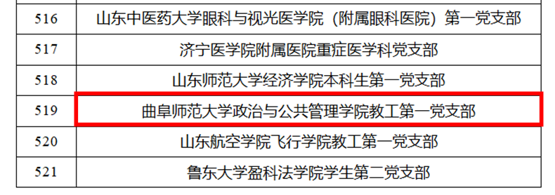 曲阜师大政治与公共管理学院讯 近日,教育部办公厅公布了第四批全国党建工作示范高校、标杆院系、样板支部培育创建单位名单,其中,米兰官方网站政治与公共管理学院教工第一党支部获批“全国党建工作样板支部”培育创建单位。