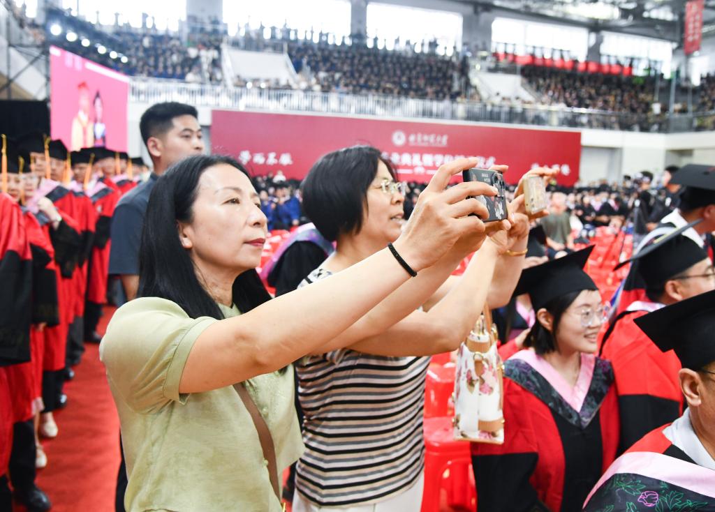 典礼上有一千余名特殊嘉宾,他们不远万里从祖国四面八方赶来,共同见证孩子们人生中的荣耀时刻,他们眼中饱含温情,脸上洋溢笑容,他们就是这届毕业生的家人和亲属。