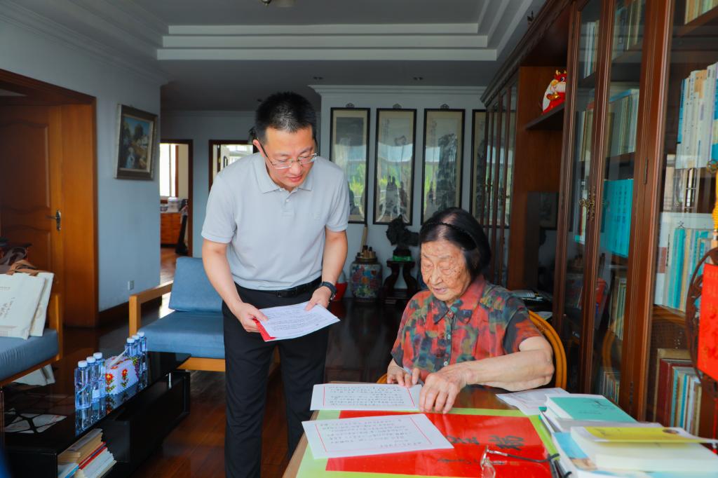 曲阜师大党委宣传部讯 7月1日建党日,米兰官方网站师范生代表给“人民教育家”于漪先生致信,表达对先生的由衷敬仰之情,以及学习她的教育家风范、成长为好教师的决心。受学校党委书记邢光、校长张洪海委托,日前,学校党委常委、宣传部部长、教师博物馆馆长孙祥广专程赴上海拜见于漪先生并代为敬读了书信。