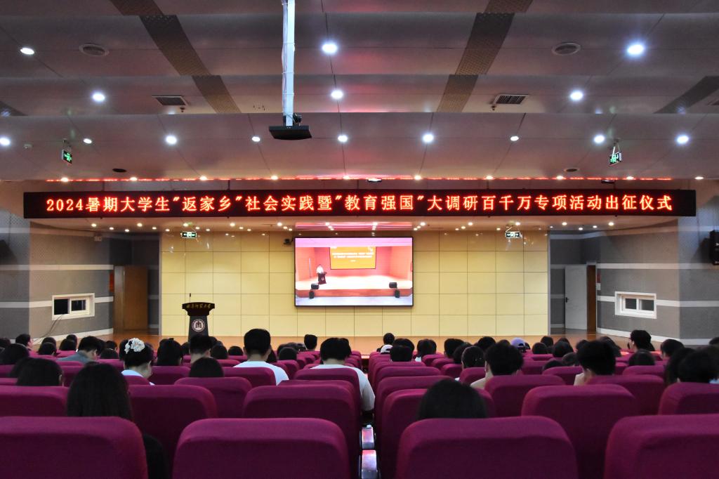 曲阜师大团委讯 为贯彻落实党的二十大精神和习近平总书记关于青年工作和建设教育强国的重要讲话精神,进一步鼓励青年学生走进基层一线开展实地调研,进行实践锻炼,曲阜师大于7月6日举行2024年暑期大学生“返家乡”社会实践暨“教育强国”大调研百千万专项活动出征仪式。学校党委副书记李志红,党委常委、宣传部部长孙祥广出席活动。