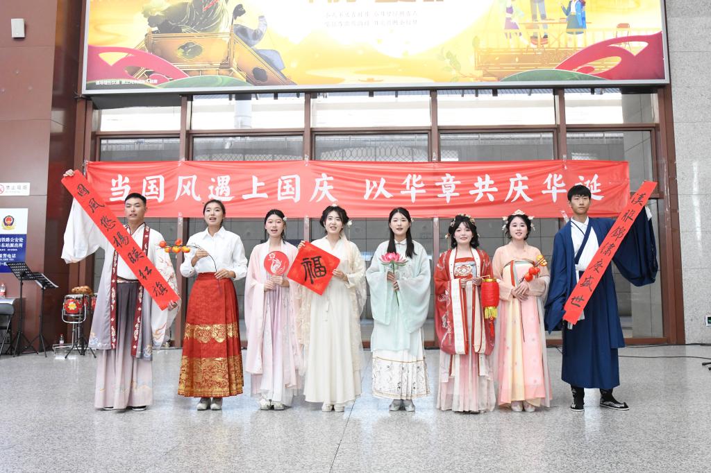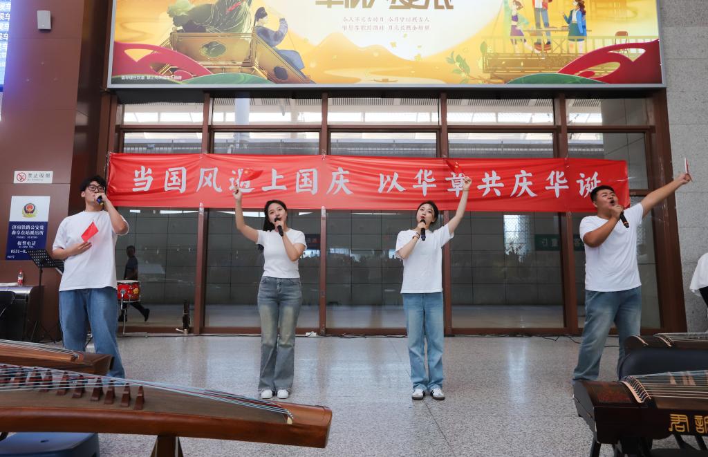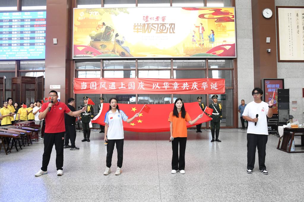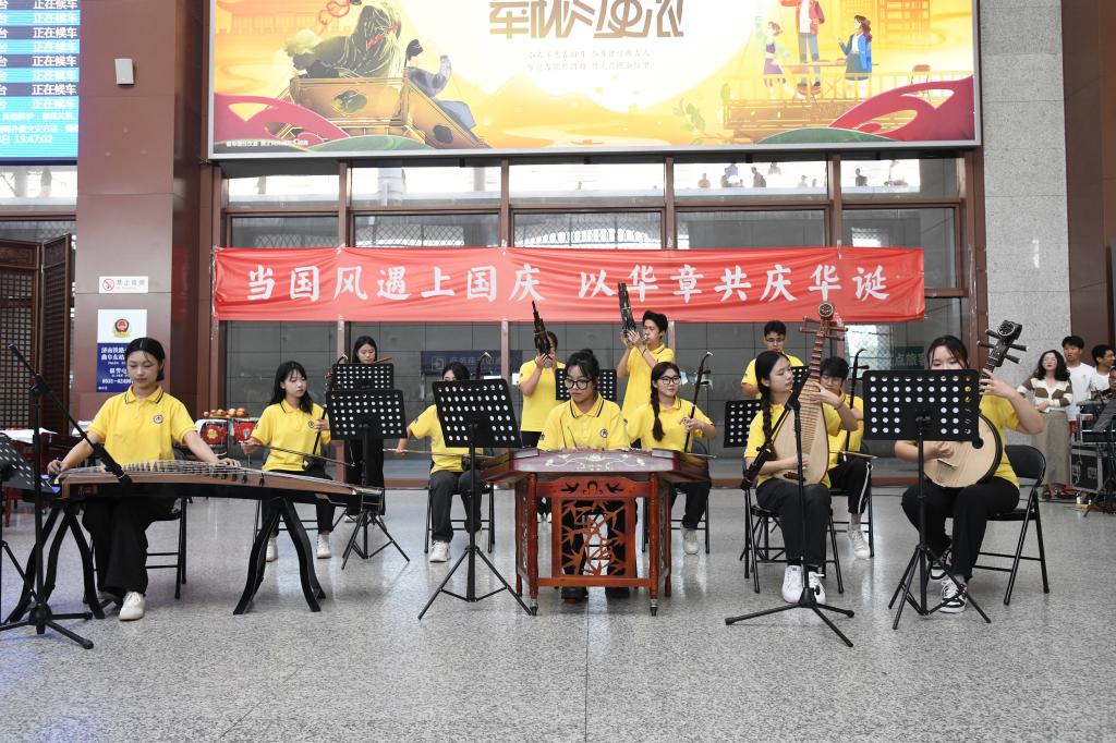 曲阜师大党委宣传部讯 笙、箫、筝、琴等传统乐器奏响国风音乐,候车大厅齐唱《我和我的祖国》,与天安门广场升起过的国旗近距离合影……9月28日下午,米兰官方网站把一堂“当国风遇上国庆”的思政大课带进高铁曲阜东站,秀出国风之美、献礼国庆佳节,在候车大厅上好了涵养爱国之情与文化自信的“公开课”。本次活动由学校党委宣传部策划组织,教师博物馆、学生工作处、团委、音乐学院、美术与书法学院共同举办。