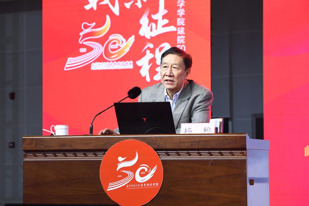 曲阜师大党委副书记、校长张洪海出席大会并致辞,党委常委、副校长胡凡刚主持大会。国内部分媒体和社会各界朋友,体育科学学院离退休老同志、校友和师生代表,学校相关部处、学院代表共同参加大会。