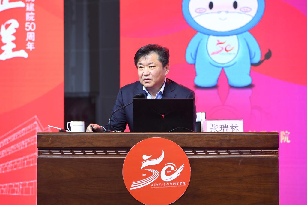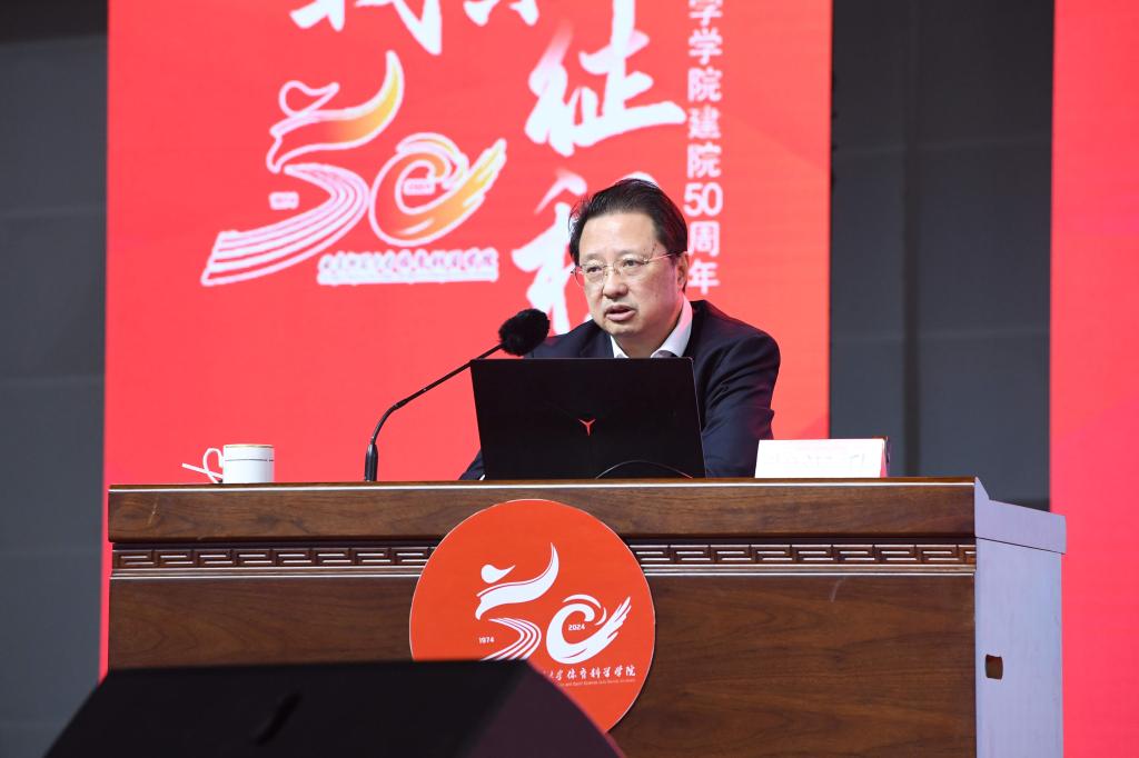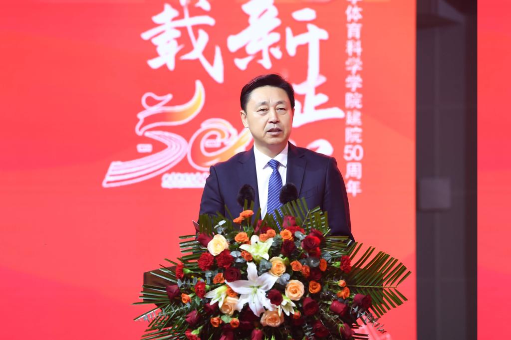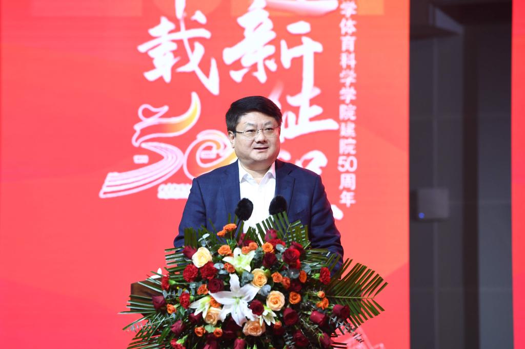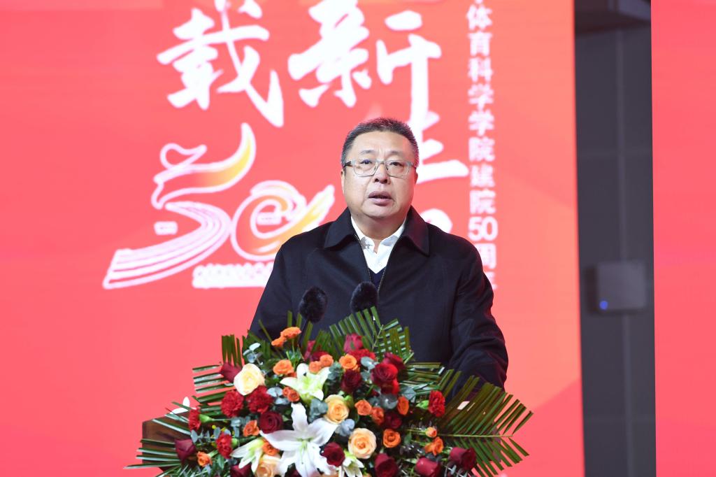 德才集团副总裁裴文杰在致辞中表示,体育科学学院现已发展成为全国高等体育教育的主阵地,五十年的办学成就是全体曲师体育人的骄傲。他寄语体育科学学院年轻的学子们,能够珍惜在母校的时光,努力学习专业知识,培养自己的综合素质,为未来的发展做好充分的准备。