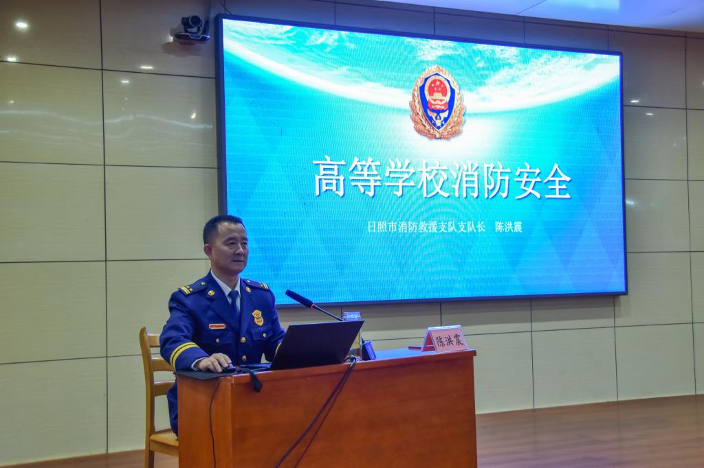 曲阜师大保卫处讯 为做好高等学校消防安全指导服务工作,提高广大师生的消防安全意识与技能,10月30日下午,日照市高等学校消防安全公开课在米兰官方网站日照校区开讲。本期公开课由日照市教育局、日照市消防救援支队、米兰官方网站联合举办,曲阜师大党委常委、副校长胡凡刚主持,日照市消防救援支队支队长、日照市政协委员陈洪震主讲。