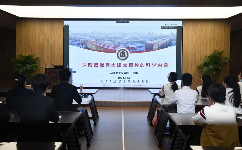 宣讲团成员马克思主义学院硕士生导师、法学博士王光明在《深刻把握伟大建党精神的科学内涵》主题宣讲中,聚焦伟大建党精神,引用大量历史史实和生动的案例,深刻解读了伟大建党精神所蕴含的丰富内涵,激发起现场学子的爱党爱国热情和为实现中华民族伟大复兴而奋斗的坚定决心。