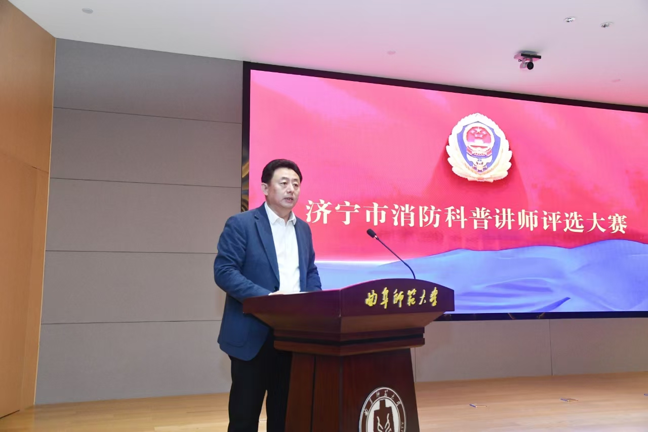 纪洪涛代表曲阜师大向莅临大赛的各位领导、来宾表示热烈欢迎,并向入围决赛的选手们表示热烈祝贺。他强调,消防安全关乎每个人的生命财产安全,是社会稳定和谐的重要保障。此次消防宣讲师竞赛活动,不仅是为了选拔优秀人才,更是为了通过比赛交流,创新宣传理念,改进宣讲方式,让消防宣传更加贴近群众、贴近实际、贴近生活。