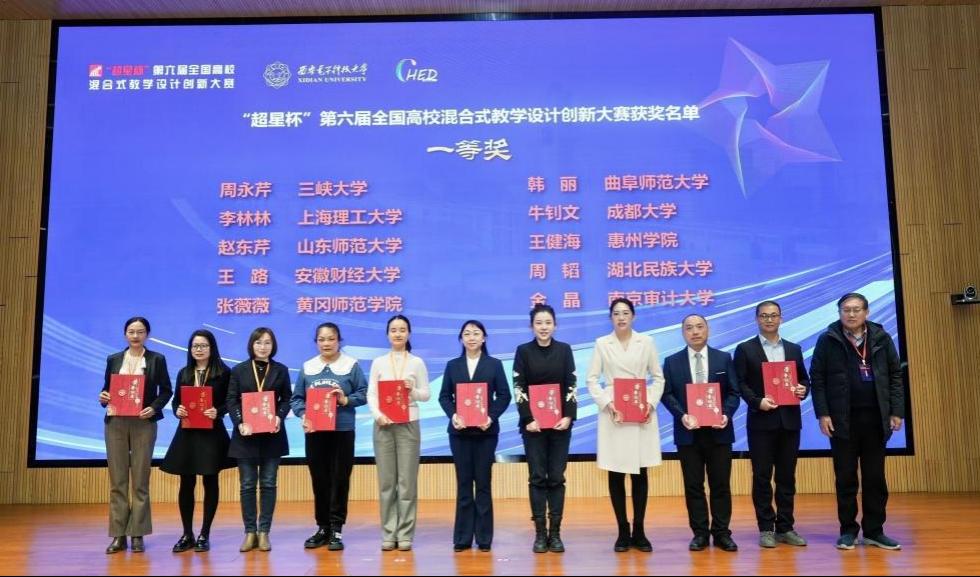 韩丽老师(右四)参加全国高校混合式教学设计创新大赛颁奖典礼