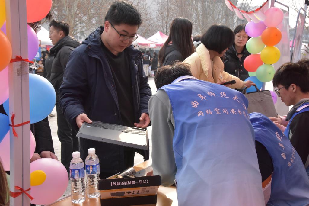 曲阜师大团委讯 为积极响应共青团中央、全国学联的号召,引领广大学子在志愿服务中践行“奉献、友爱、互助、进步”的精神。3月5日,曲阜师大集中开展“传承雷锋精神 争做时代先锋——‘我为同学做实事’”主题实践活动。党委常委、副校长胡凡刚现场了解各学院活动开展情况,充分肯定了学校各级团学组织在服务同学方面做出的贡献,强调全校各级团学组织要发挥好桥梁纽带作用,团学干部要发挥模范先锋作用,在服务同学、传递温暖中涵养品格,在支教助困、基层治理中锤炼本领,让学雷锋成为校园文明新风尚。
