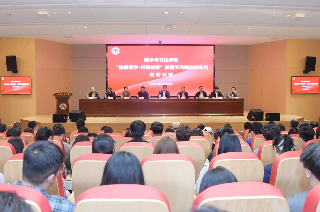 启动仪式上,美术与书法学院首届教学督导委员会委员受聘仪式举行,刘刚为受聘教师颁发聘书。学院副院长韩波宣读学风建设活动月实施方案教师代表李建峰学生代表孙萌泽发言。