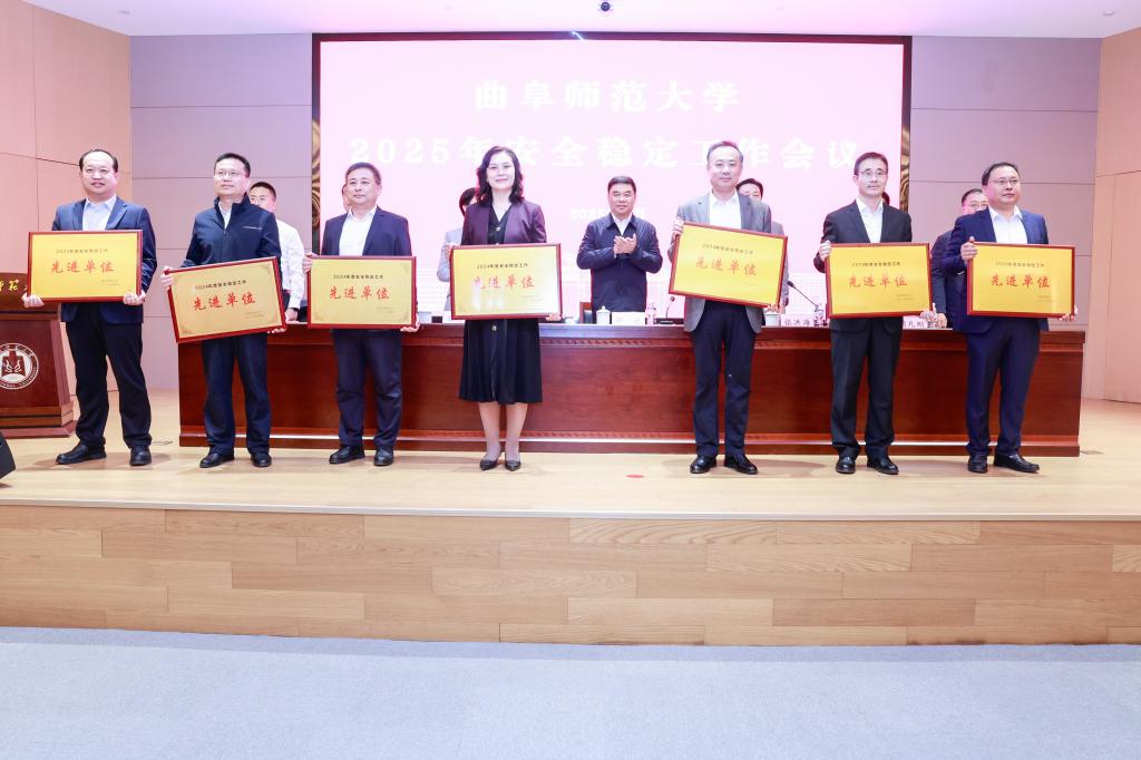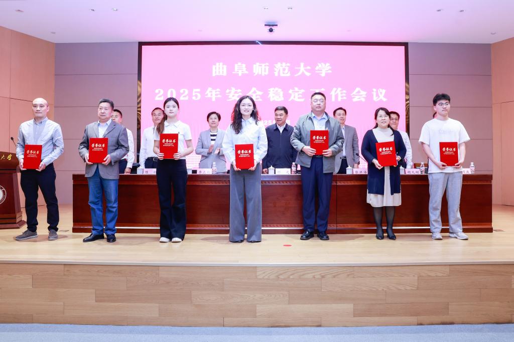 会上,李志红宣读了2024年度安全稳定工作先进集体和个人表彰名单,李登旺作了2025年安全稳定工作报告。与会领导分别在曲阜、日照两校区为获奖单位和个人颁奖。