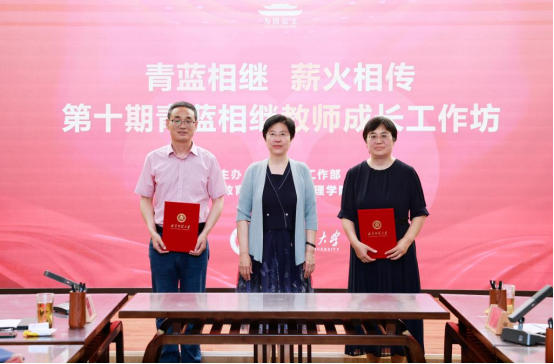教育学部徐瑞教授、心理学院孙俊才教授受聘第十批“青年教师成长导师”,李志红为两位成长导师颁发证书。