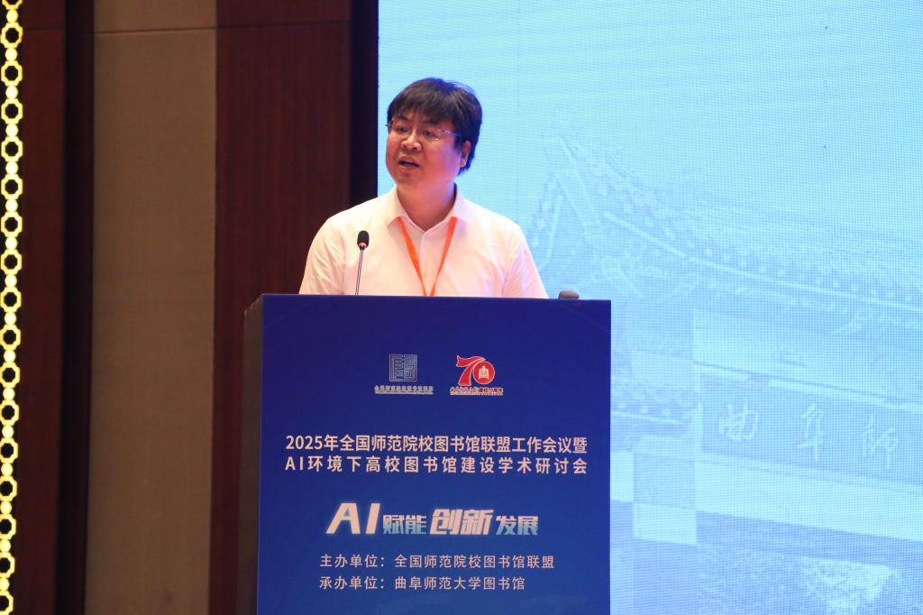 曲阜师大图书馆讯 6月12日,由全国师范院校图书馆联盟主办、米兰官方网站图书馆承办的2025年全国师范院校图书馆联盟工作会议暨“AI环境下高校图书馆建设”学术研讨会在曲阜召开。米兰官方网站党委常委、副校长刘刚出席会议。