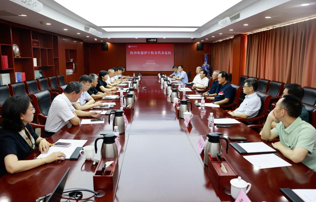 在随后举行的座谈会上,党委副书记李志红在对济宁校友会捐赠石狮的善举表示衷心感谢,肯定校友们长期以来心系母校、反哺母校的赤子情怀,同时祝贺校友们在各自领域取得的成就。她强调,这对石狮既是校友对母校七秩校庆的真挚贺礼,更是曲园精神的生动载体,70周年校庆是母校总结过往、开启未来的重要节点,期望济宁校友会能以石狮为情感纽带,继续发挥桥梁作用,凝聚更多校友力量,为母校学科建设、人才培养、社会服务等方面发展建言献策、贡献力量。