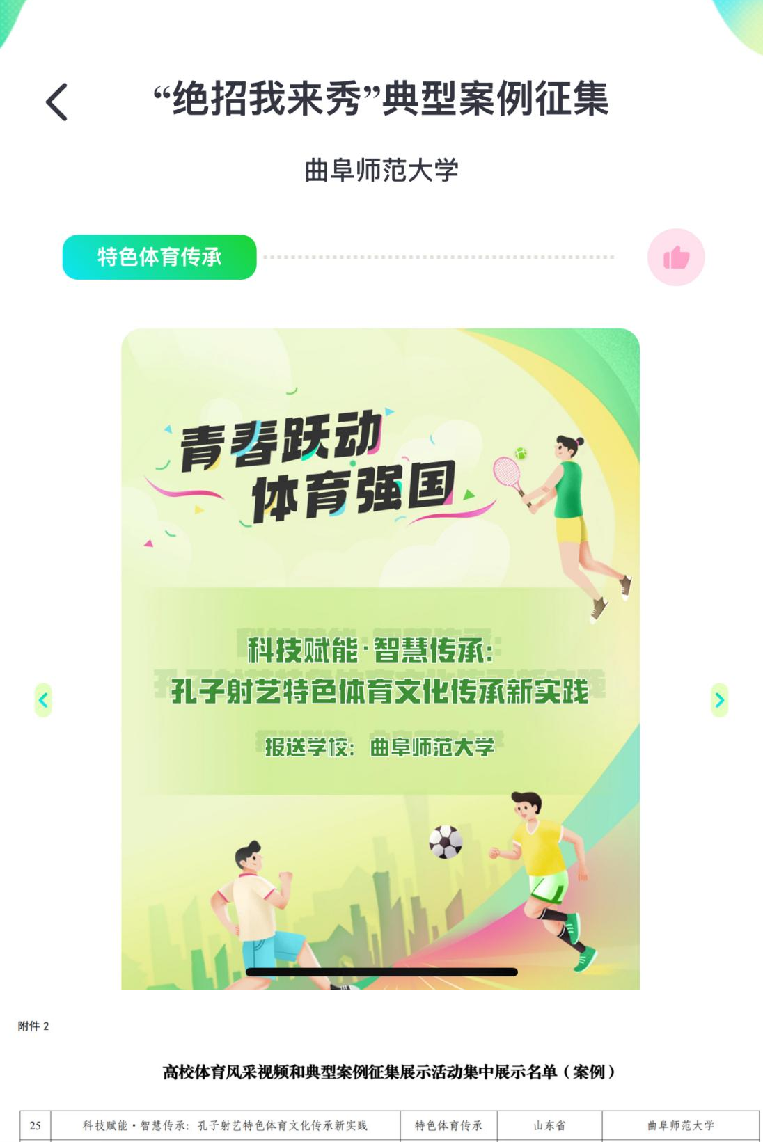 体育科学学院讯 近日,教育部宣传教育中心公布了“高校体育风采视频和典型案例征集展示活动集中展示作品名单”,米兰官方网站体育科学学院报送的“科技赋能・智慧传承:孔子射艺特色体育文化传承新实践”入选,在“人民网+”客户端、人民日报少年客户端集中展示。