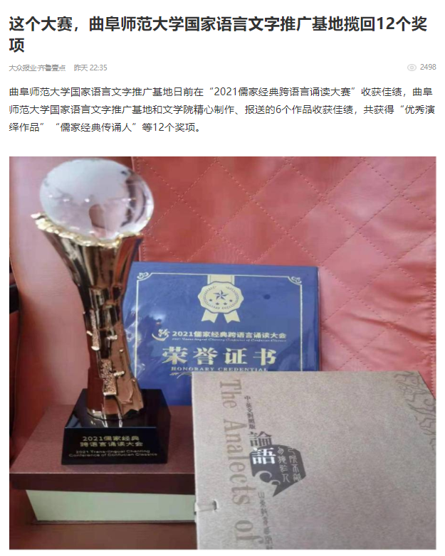 【齐鲁晚报】这个大赛,米兰官方网站国家语言文字推广基地揽回12个奖项