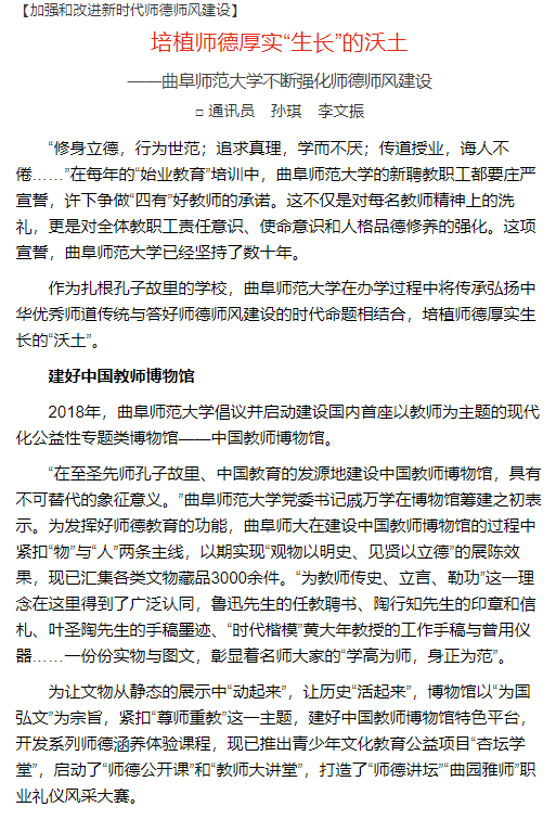 【光明日报】曲阜师大举办“师德公开课” 师德楷模诠释大国良师之道
