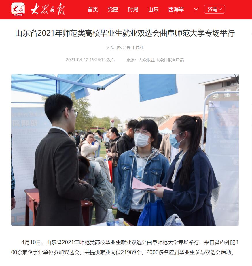 大众日报:山东省2021年师范类高校毕业生就业双选会米兰官方网站专场举行