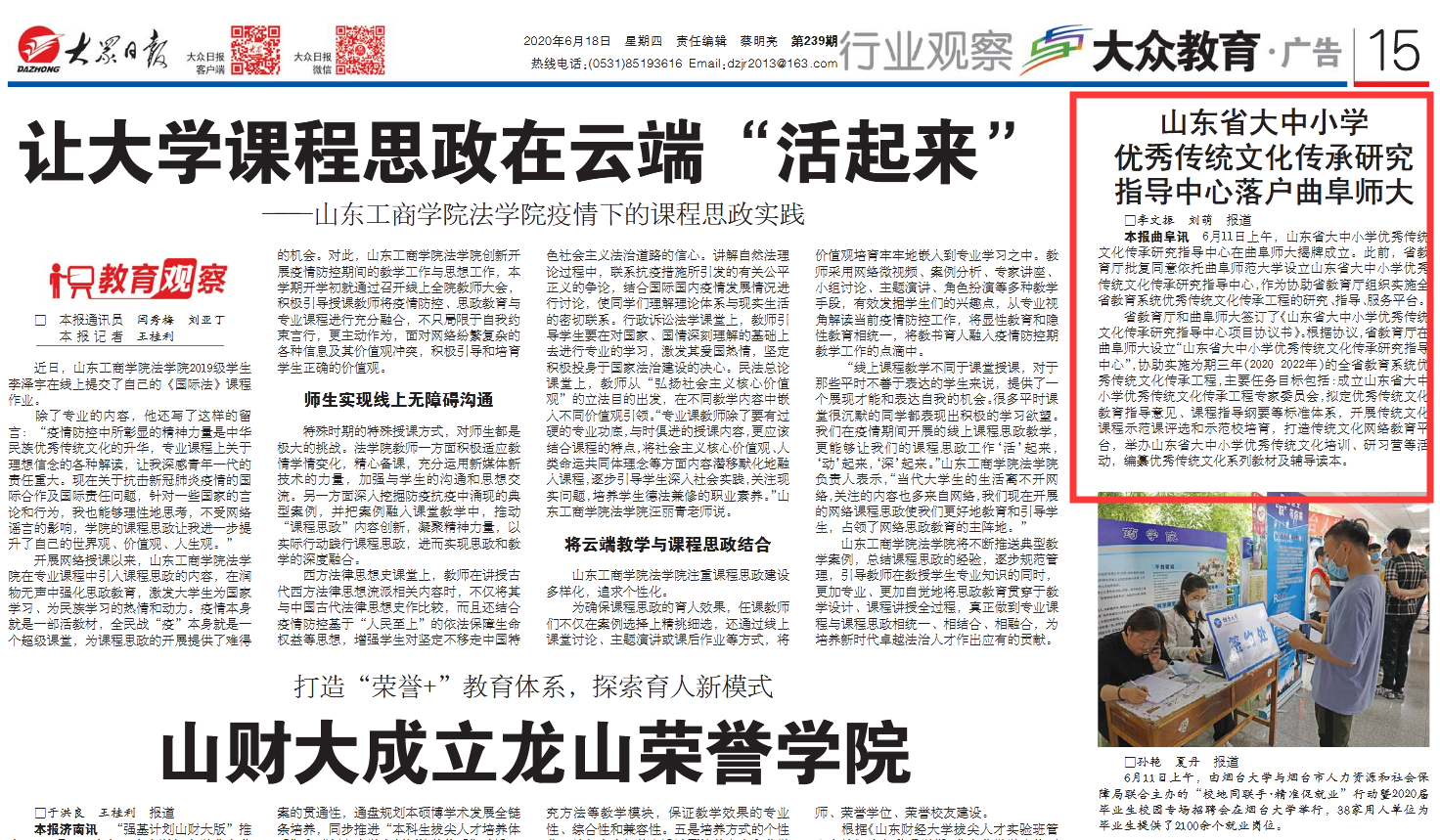 报道链接:http://paper.dzwww.com/dzrb/content/20200618/Articel15004MT.htm