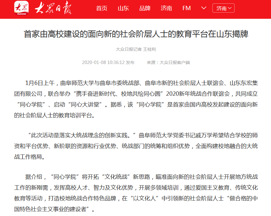 大众网报道链接:http://jining.dzwww.com/xsq/qfs/202001/t20200108_17238987.htm