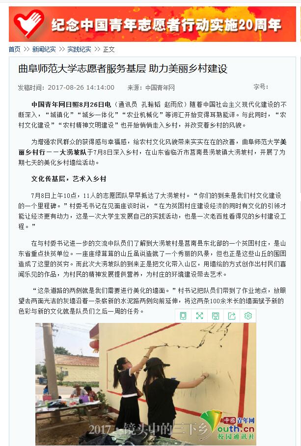 中国青年网报道链接:http://sxx.youth.cn/jxqc/sjjs/201708/t20170826_10593586.htm