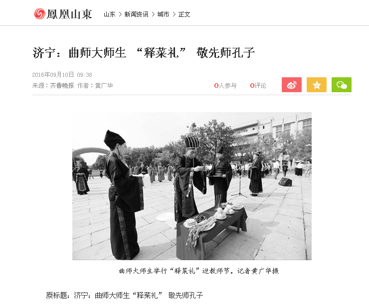 凤凰网:曲师大师生“释菜礼”迎教师节