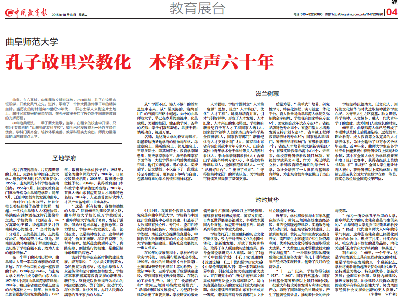 中国教育报报道链接:米兰官方网站 孔子故里兴教化 木铎金声六十年