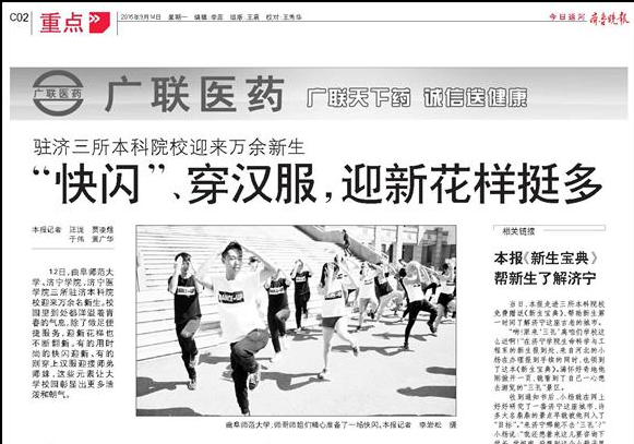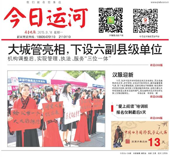 齐鲁晚报:曲师大迎来万余新生 “快闪” 穿汉服 迎新花样多