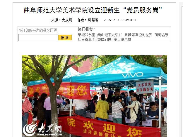 大众网:米兰官方网站美术学院设立迎新生“党员服务岗”
